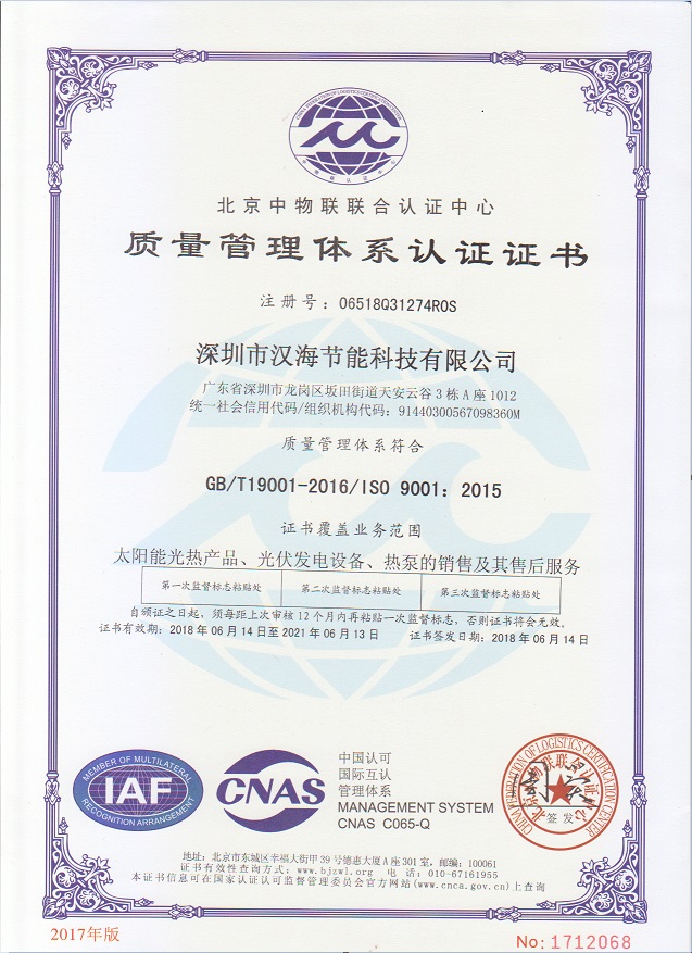 深圳市漢海節(jié)能科技有限公司成立于2011年,注冊資金6000萬元,總部設(shè)在深圳,是一家集設(shè)計(jì)、研發(fā)、施工于一體的專業(yè)化從事太陽能中央熱水工程、熱泵中央熱水工程、中央空調(diào)、光伏發(fā)電、水處理等新能源及節(jié)能環(huán)保行業(yè)的綜合服務(wù)商和工程商。在將近10年的發(fā)展歷程中,始終走在行業(yè)發(fā)展的前沿,是專業(yè)從事太陽能光熱、光伏,空氣源、太陽能熱水工程、水源熱泵,中央空調(diào),水處理產(chǎn)品的設(shè)計(jì)、安裝、售后服務(wù)為一體的高新技術(shù)企業(yè);是專業(yè)提供太陽能中央熱水工程、熱泵中央熱水工程、中央空調(diào)工程、光伏發(fā)電工程、水處理工程、太陽能熱水工程等全面解決方案的供應(yīng)商和工程商,產(chǎn)品涵蓋太陽能集熱器、空氣源熱泵、水源熱泵、中央空調(diào)、光伏組件、太陽能熱水工程等,是新能源的倡導(dǎo)者和推動者。公司成立以來,始終秉承“誠信、責(zé)任、專業(yè)、高效”的服務(wù)宗旨,以市場需求為導(dǎo)向,以為客戶創(chuàng)造價值為己任的精神,不斷開拓創(chuàng)新,通過多年的快速發(fā)展,公司綜合實(shí)力躍居行業(yè)前列。漢海擁有一支經(jīng)驗(yàn)豐富、善打硬仗的專業(yè)高效團(tuán)隊(duì);擁有一批專業(yè)的高級工程師、中級工程師、二級建造師、造價工程師、電氣設(shè)計(jì)師、給排水設(shè)計(jì)師;擁有一批機(jī)電、安防、水、電等專業(yè)技術(shù)施工和售后人員,配備先進(jìn)齊全,實(shí)力雄厚,技術(shù)領(lǐng)先。漢海以質(zhì)量樹信譽(yù)、以工藝立標(biāo)桿、以管理創(chuàng)效益、以服務(wù)得人心,工藝水平在業(yè)界獨(dú)樹一幟,成為行業(yè)模仿的典范。漢海承建的機(jī)電工程(設(shè)計(jì)、施工)涉及星級酒店、賓館、高檔辦公樓、花園別墅、住宅小區(qū)、學(xué)校、水療中心、工廠等各種類型的工程,工程項(xiàng)目遍布全國各地。漢海將致力于成為全球信賴的新能源綜合服務(wù)商,為客戶提供新能源的全方位解決方案。未來,漢海將依托國家政策,積極開拓粵港澳大灣區(qū)、中國特色社會主義先行示范區(qū)市場及“一帶一路”沿線國際市場,推動新能源的新輝煌。